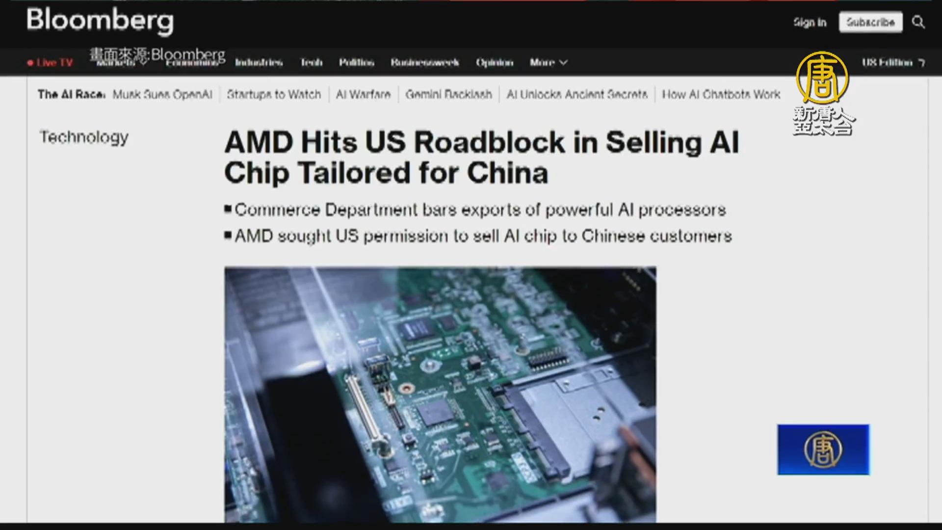 【新唐人亞太台 2024 年 03 月 05 日訊】美國持續打擊中共半導體,彭博社報導,AMD原本要出口降規版的AI晶片給中國大陸客戶,但美國官員告知,這款晶片太強大,必須獲得美國商務部許可,才能出售。
