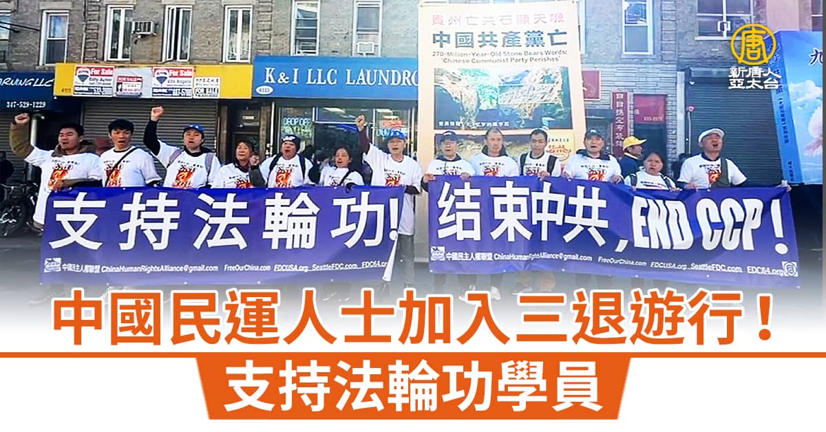 中國民運人士加入三退遊行!支持法輪功學員