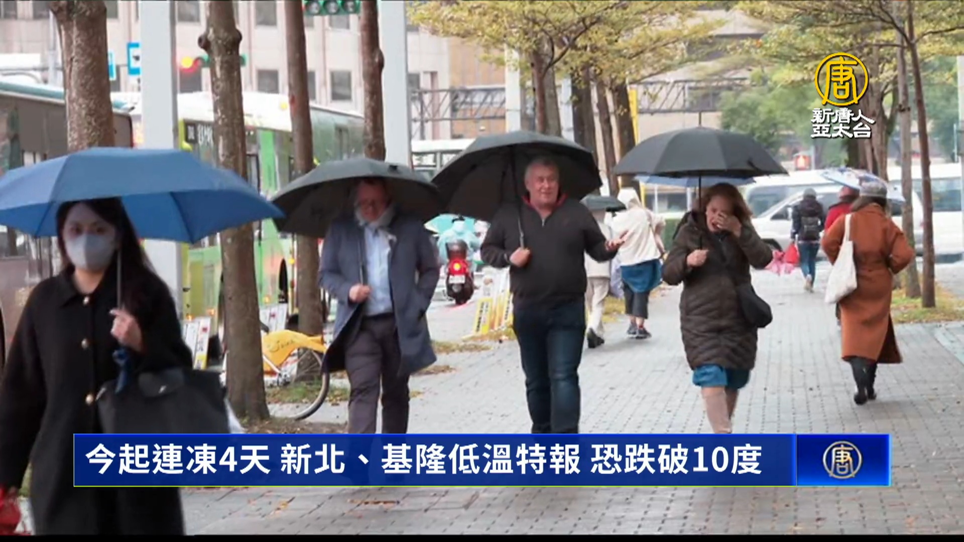 【新唐人亞太台 2024 年 03 月 06 日訊】新聞一開始帶您關心天氣,今天氣溫驟降,越晚還會越冷,台灣中央氣象署針對新北、基隆,發布低溫特報。全台迎接鋒面,中部以北轉為短暫陣雨,強烈大陸冷氣團持續南下,北部高溫從攝氏21度降到13度、中部降到14度,南部高溫也只有17度。這波冷空氣將從今天6日開始,影響到週六9日,最冷時間落在週五深夜到週六清晨,北台灣空曠地區甚至可能攝氏10度以下。周五水氣減少,但下週一(11日)將有另一波鋒面及冷空氣接力,又轉為濕冷天氣。