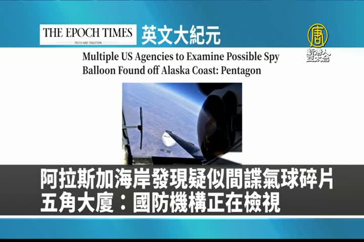 【新唐人亞太台 2024 年 03 月 08 日訊】首先來看到美國大紀元英文版報導:阿拉斯加海岸發現疑似間諜氣球碎片,五角大廈表示,國防機構正在檢視當中。