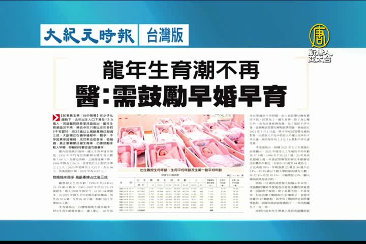 【新唐人亞太台 2024 年 03 月 11 日訊】接著看到大紀元時報台灣版報導:龍年生育潮不再,醫院院長表示,需鼓勵早婚早育。