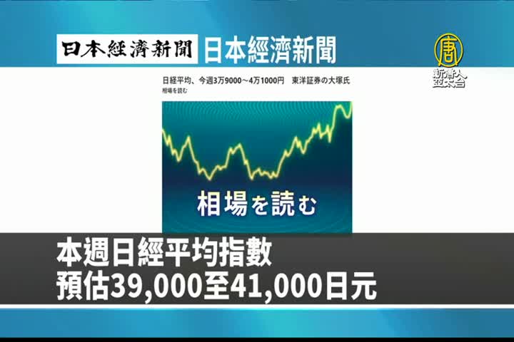 【新唐人亞太台 2024 年 03 月 11 日訊】來看到日本經濟新聞報導:日經平均股價3月8日收盤價3萬9千688日圓。 本週預計將徘徊在3萬9千至4萬1千日圓左右。