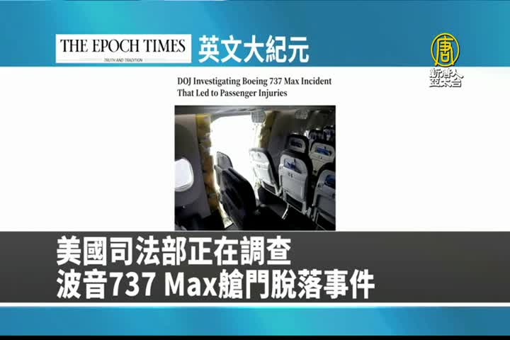 【新唐人亞太台 2024 年 03 月 12 日訊】首先來看到美國大紀元英文版報導:美國司法部正在調查波音737 Max艙門脫落事件。
