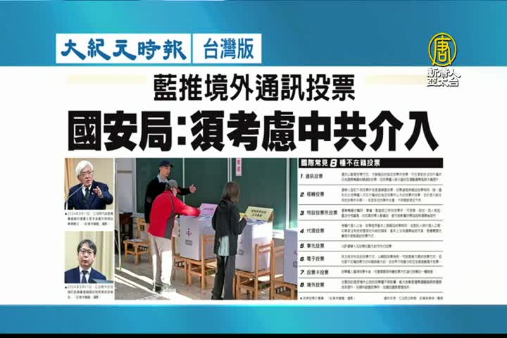 【新唐人亞太台 2024 年 03 月 12 日訊】接著看到大紀元時報台灣版報導:藍營推境外通訊投票,國安局表示,須考慮中共介入。