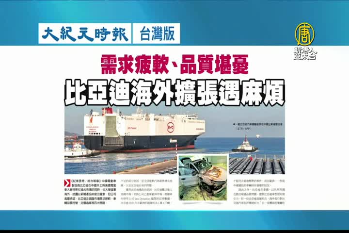 【新唐人亞太台 2024 年 03 月 14 日訊】接著看到大紀元時報台灣版報導:需求疲軟、品質堪憂,比亞迪海外擴張遇麻煩。