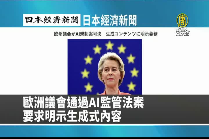 【新唐人亞太台 2024 年 03 月 14 日訊】來看到日本經濟新聞報導:歐洲議會通過全球第一個AI監管法案,要求必須明確標示出AI生成的內容。