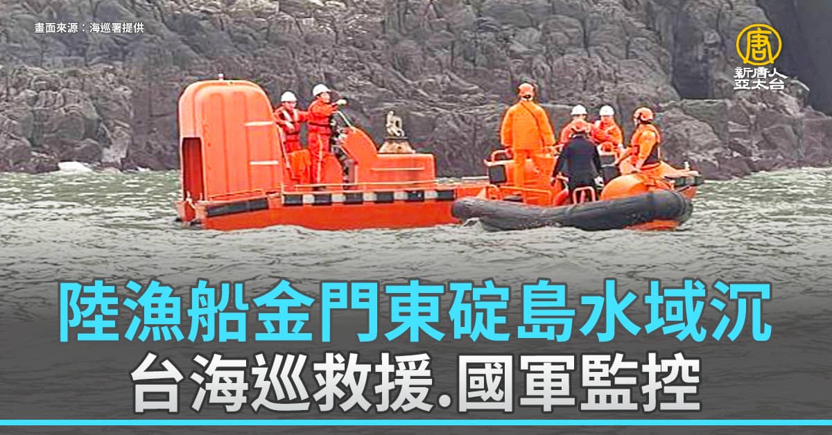 【新唐人亞太台 2024 年 03 月 14 日訊】一艘大陸籍漁船今天(14日)清晨,在金門東碇島西南方附近水域沉沒。船上六人落海,海巡署派遣4艘巡防艇前往救援,陸方也出動六艘救難艦,目前尋獲兩人生還、兩人沒有生命跡象,另外還有兩人失蹤。而沉船處靠近東碇島,島上國軍守備隊也投入搜救。