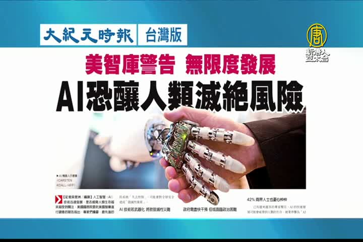 【新唐人亞太台 2024 年 03 月 15 日訊】接著看到大紀元時報台灣版報導:美國智庫警告,無限度發展AI,恐造成人類滅絕風險。