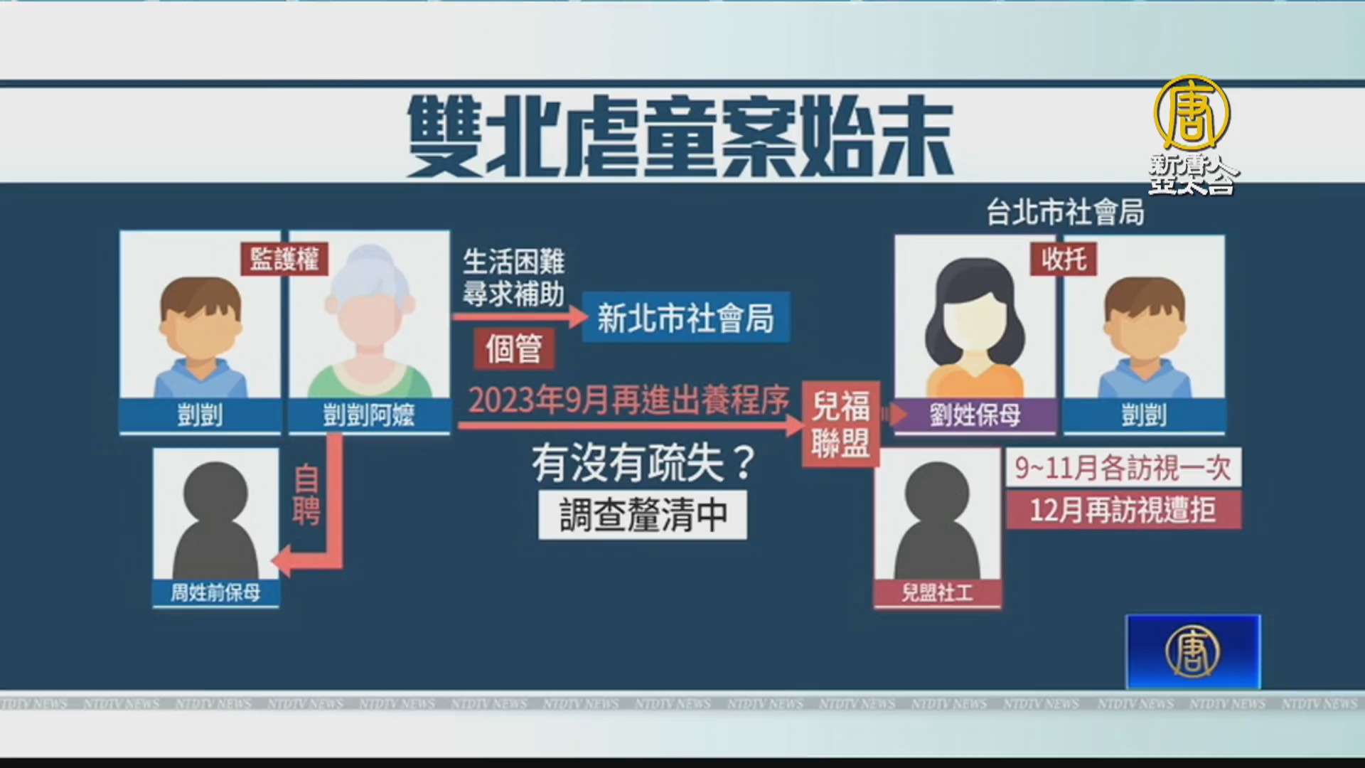 【新唐人亞太台 2024 年 03 月 15 日訊】早安新唐人先來關心,保母虐童案輿論持續延燒,責任歸屬受到討論。1歲男童剴剴來自新北市的失能家庭,被送往協辦衛福部業務的兒福聯盟,後來兒福又轉介給取得台北市府登記證的劉姓保母嫌犯,雖然兒福社工探訪三次與北市社會局探訪一次,但剴剴仍在收托三個月後遭虐離世,中間的漏洞在哪裡?當事家屬的聲明錄音檔曝光,盼還原案發事實真相。