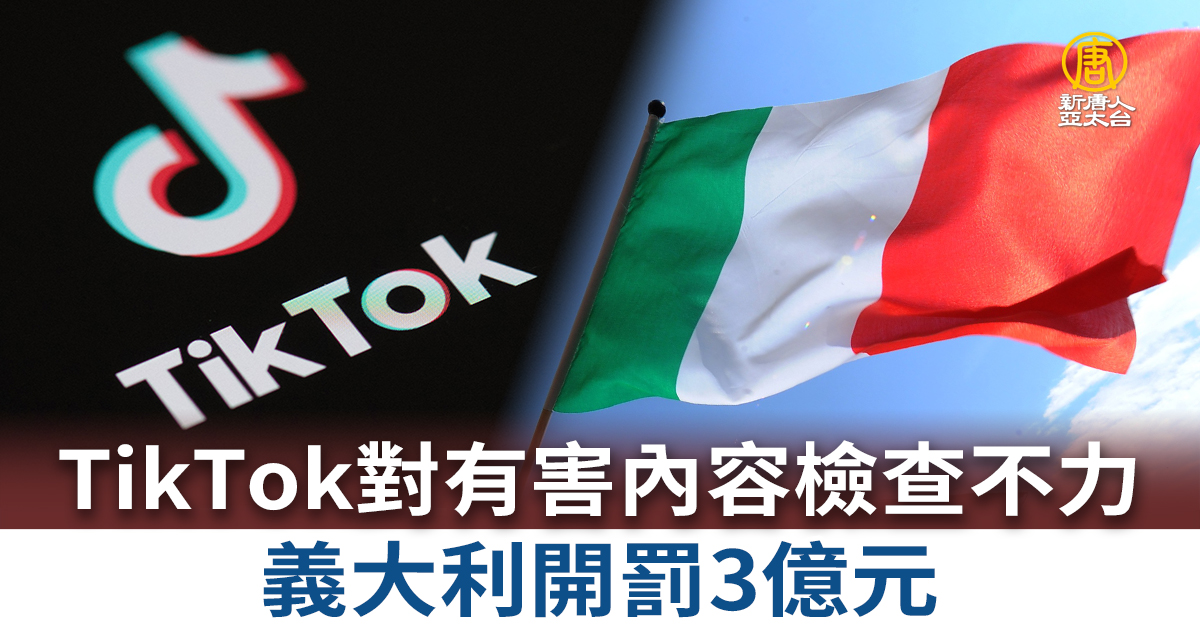 【新唐人亞太台 2024 年 03 月 15 日訊】國際關注中國短影音平台危害,義大利競爭與市場管理局(AGCM)14日表示,已經對中國「字節跳動」旗下三處TikTok公司,處以總共1千萬歐元,約新台幣3億4千多萬元的罰款,原因是,沒能夠充分檢查平台上的有害內容。