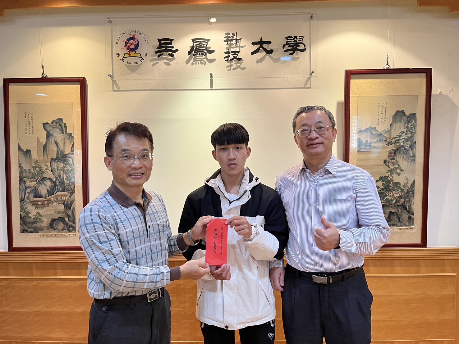 吳鳳科技大學指出,本校榮獲教育部技職之光十一連霸,辦學績效獲各界肯定。同時提供學生多項獎助學金,包括大專弱勢助學、急難慰助、證照獎勵、國際競賽獲獎補助等各類獎金;除了校內資源外,也積極申請校外獎助學金,學生表現也不負眾望,楊威煥、卓鈺畫兩位同學,獲財團法人榮月科教文教育基金會獎學金。