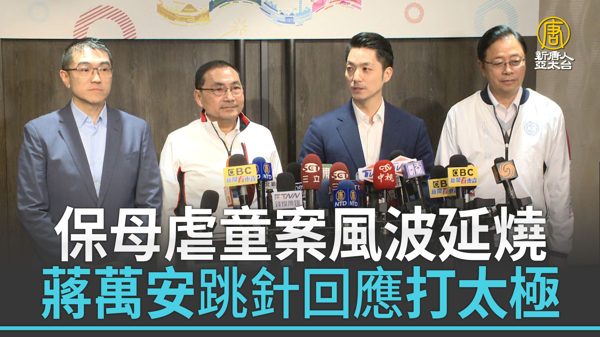 【新唐人亞太台 2024 年 03 月 15 日訊】來看到,北北基桃四位首長,今天出席「基北北桃合作交流平台」會議,面對保母虐童案風波,台北市長蔣萬安提出「兒童保護7+1政策」,要亡羊補牢,但對於各方質疑,蔣萬安只持續強調「沒有人是局外人」。