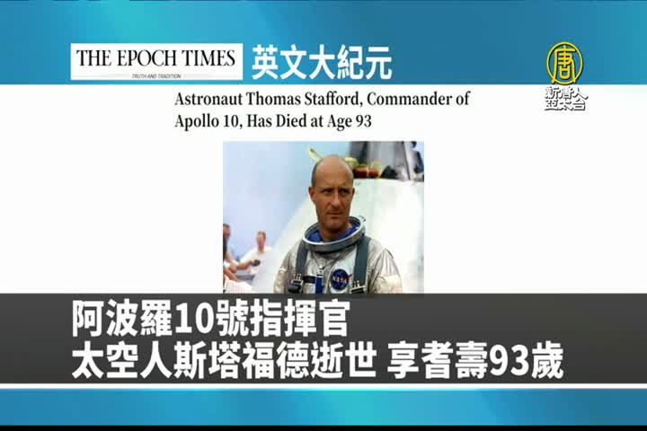 【新唐人亞太台 2024 年 03 月 20 日訊】首先來看到美國大紀元英文版報導:阿波羅10號指揮官、太空人斯塔福德逝世,享耆壽93歲。