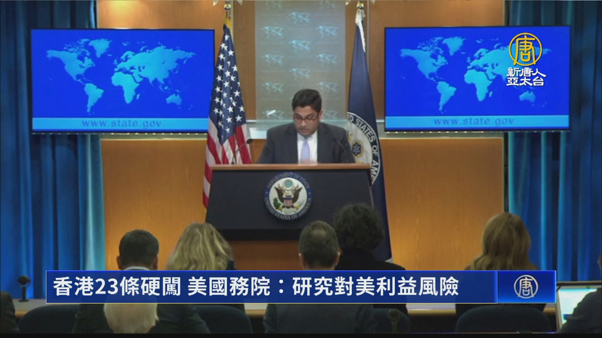 美國國務院發言人 巴特爾:「我們對於23條立法中,籠統且定義模糊的條款感到震驚。我們正在分析這項立法,並研究它對於美國公民,以及美國其他利益可能的潛在風險。」