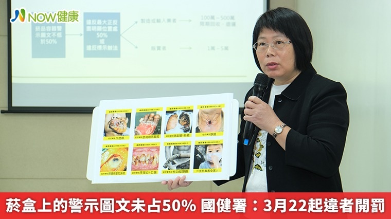 菸害防制法新法去年3月22日已上路,其中與菸盒警示圖文標示相關規定緩衝期1年將屆滿,國健署今(20)日表示,今年3月22日開始正式施行,菸盒上健康警示圖文及戒菸相女關資訊之標示面積,不得低於其最大正面及反面明顯位置處之50%。違者經查獲將處菸品製造或輸入業者100萬元以上500萬元以下罰鍰,並令其限期回收或退運,且按次處罰;至於販賣者則處1萬元以上5萬元以下罰鍰,切勿以身試法。