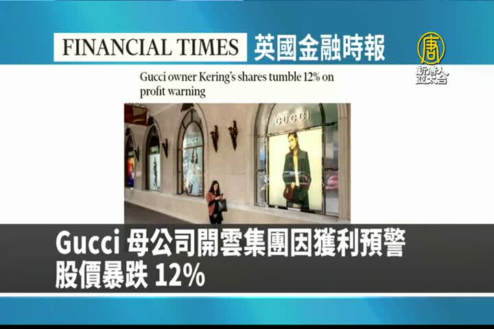 【新唐人亞太台 2024 年 03 月 21 日訊】接著是英國金融時報的報導:Gucci 母公司開雲集團因獲利預警,股價暴跌 12%。