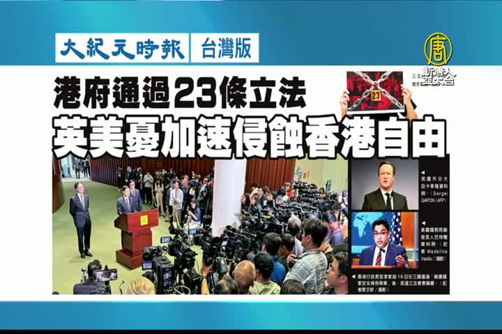 【新唐人亞太台 2024 年 03 月 21 日訊】接著看到大紀元時報台灣版報導:港府通過23條立法,英美憂加速侵蝕香港自由。