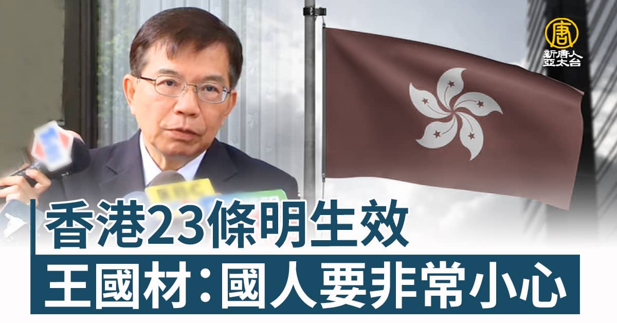 【新唐人亞太台 2024 年 03 月 22 日訊】香港立法會19日三讀通過基本法23條立法,相關條例將於明天23日生效,恐將影響國人前往香港旅遊。交通部長王國材今天表示,香港這樣的立法,民眾要非常小心,會透過陸委會、觀光署針對國人到香港做特別提醒。