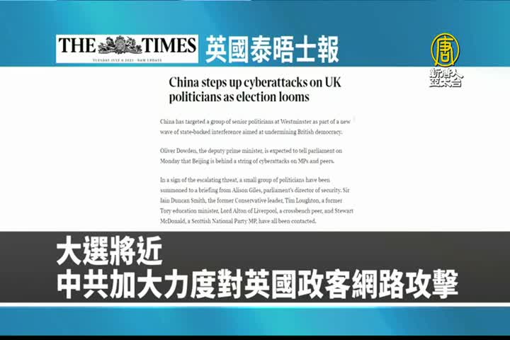 【新唐人亞太台 2024 年 03 月 25 日訊】接著是英國泰晤士報的報導:大選將近,中共加大力度對英國政客網路攻擊。