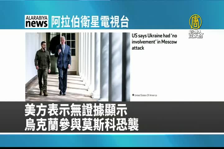 【新唐人亞太台 2024 年 03 月 25 日訊】來看到阿拉伯衛星電視台報導:美方表示無證據顯示烏克蘭參與莫斯科恐襲。