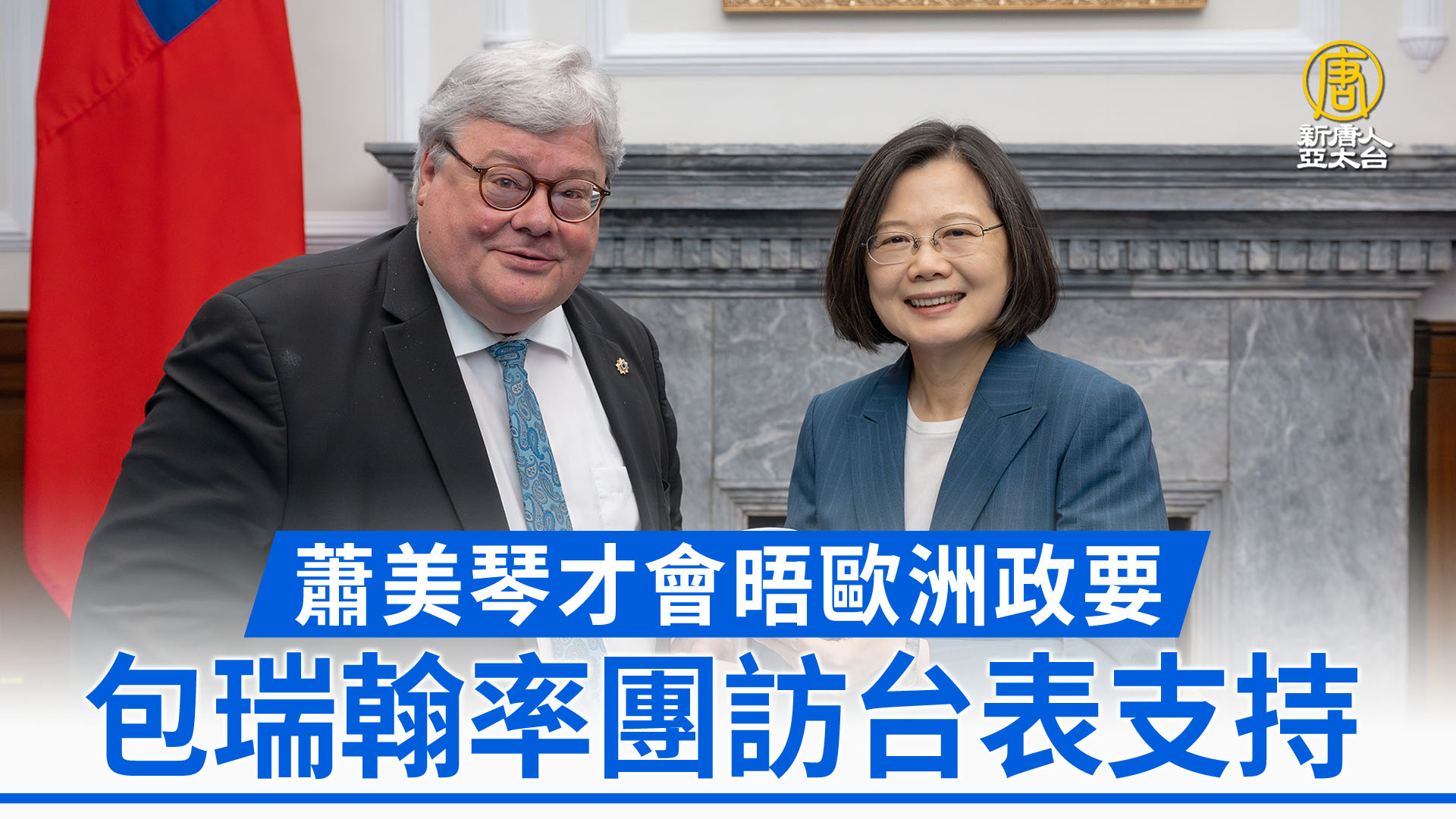 【新唐人亞太台 2024 年 03 月 25 日訊】來看到,台灣準副總統蕭美琴前腳才訪問歐洲,會晤當地政要,並歐洲議會對中關係代表團團長包瑞翰見面,在本週,包瑞翰就緊接著率團來訪台灣,並在今天(25日)上午晉見總統蔡英文。包瑞翰除了提到要借鑑台灣對抗假訊息經驗之外,也重申歐洲議會對台灣的支持。