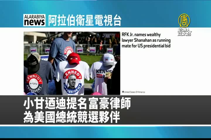 【新唐人亞太台 2024 年 03 月 27 日訊】來看到阿拉伯衛星電視台報導:小甘迺迪提名富豪律師夏納翰為美國總統競選夥伴。