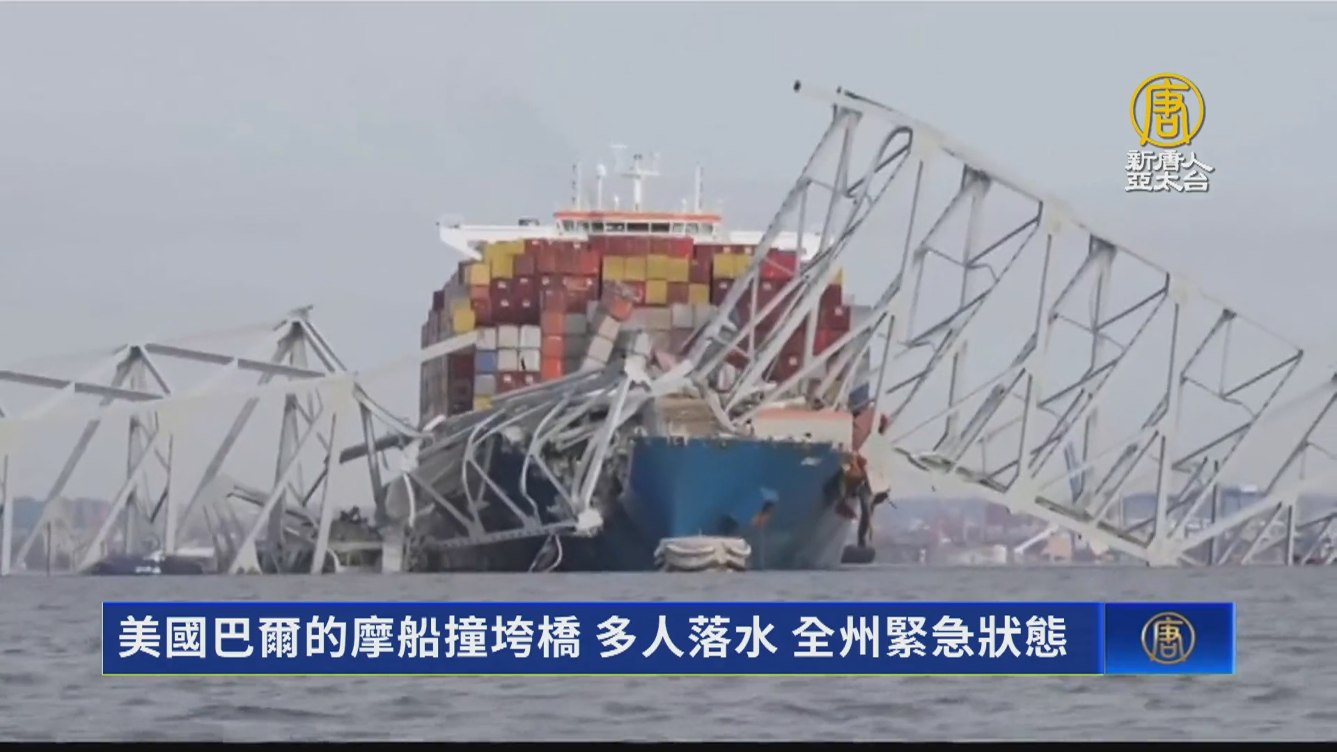 【新唐人亞太台 2024 年 03 月 27 日訊】美東時間3月26日凌晨,馬里蘭州巴爾的摩的「弗朗西斯‧斯科特‧基大橋」,遭貨船撞擊倒塌,多部車輛墜入河中,20多人落水。州長已經宣布進入緊急狀態。
