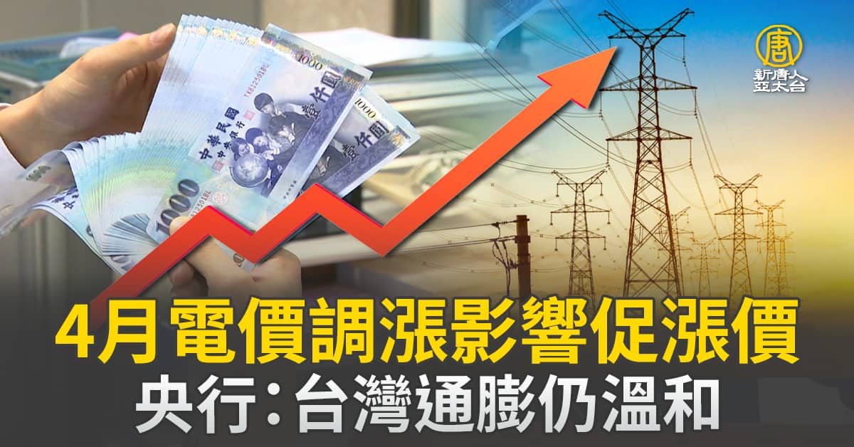 4月電價調漲影響促漲價 央行:台灣通膨仍溫和