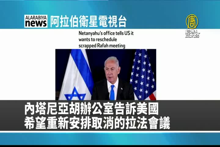 【新唐人亞太台 2024 年 03 月 28 日訊】來看到阿拉伯衛星電視台報導:以色列總理尼坦雅胡辦公室向美國表示,希望重新安排取消的拉法會議。