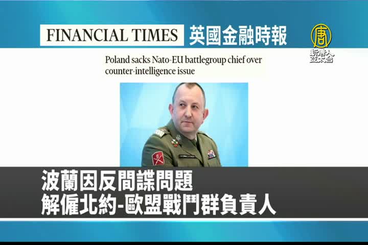 【新唐人亞太台 2024 年 03 月 29 日訊】接著是英國金融時報的報導:波蘭因反間諜問題,解僱北約-歐盟戰鬥群負責人。