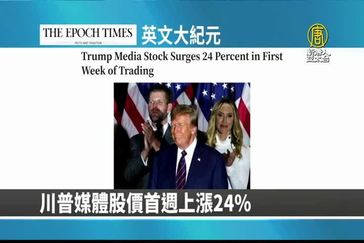 【新唐人亞太台 2024 年 04 月 01 日訊】首先來看到美國大紀元英文版報導:川普媒體股價首週上漲24%。