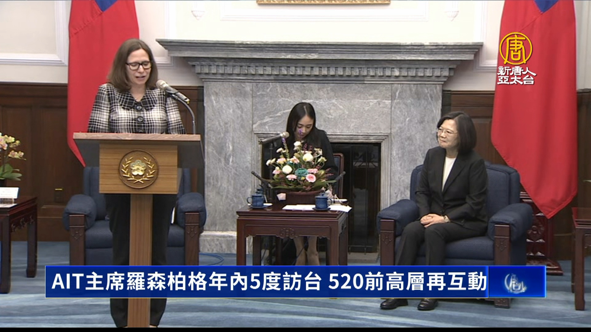 【新唐人亞太台 2024 年 04 月 01 日訊】美國在台協會主席羅森柏格訪問台灣,今天上午與總統蔡英文會面。蔡英文表示,今年是台灣關係法45周年,而羅森柏格這次是第五度訪問台灣,感謝她以實際行動深化台美關係。