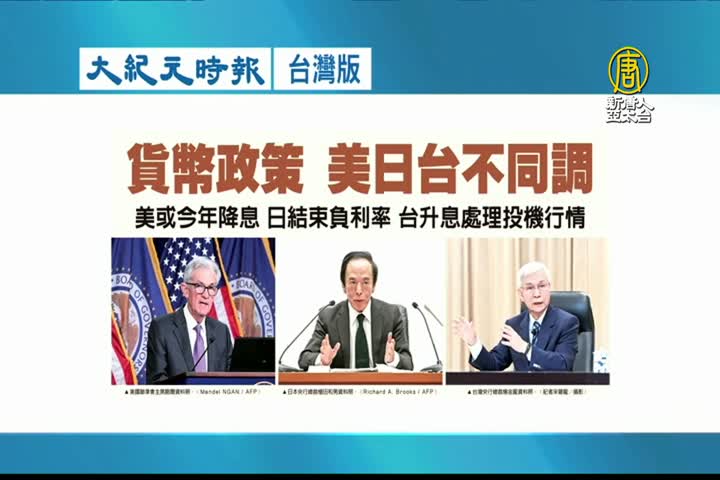 【新唐人亞太台 2024 年 04 月 05 日訊】接著看到大紀元時報台灣版報導:貨幣政策,美日台不同調。美國可能今年降息,日本結束負利率,台灣升息處理投機行情。