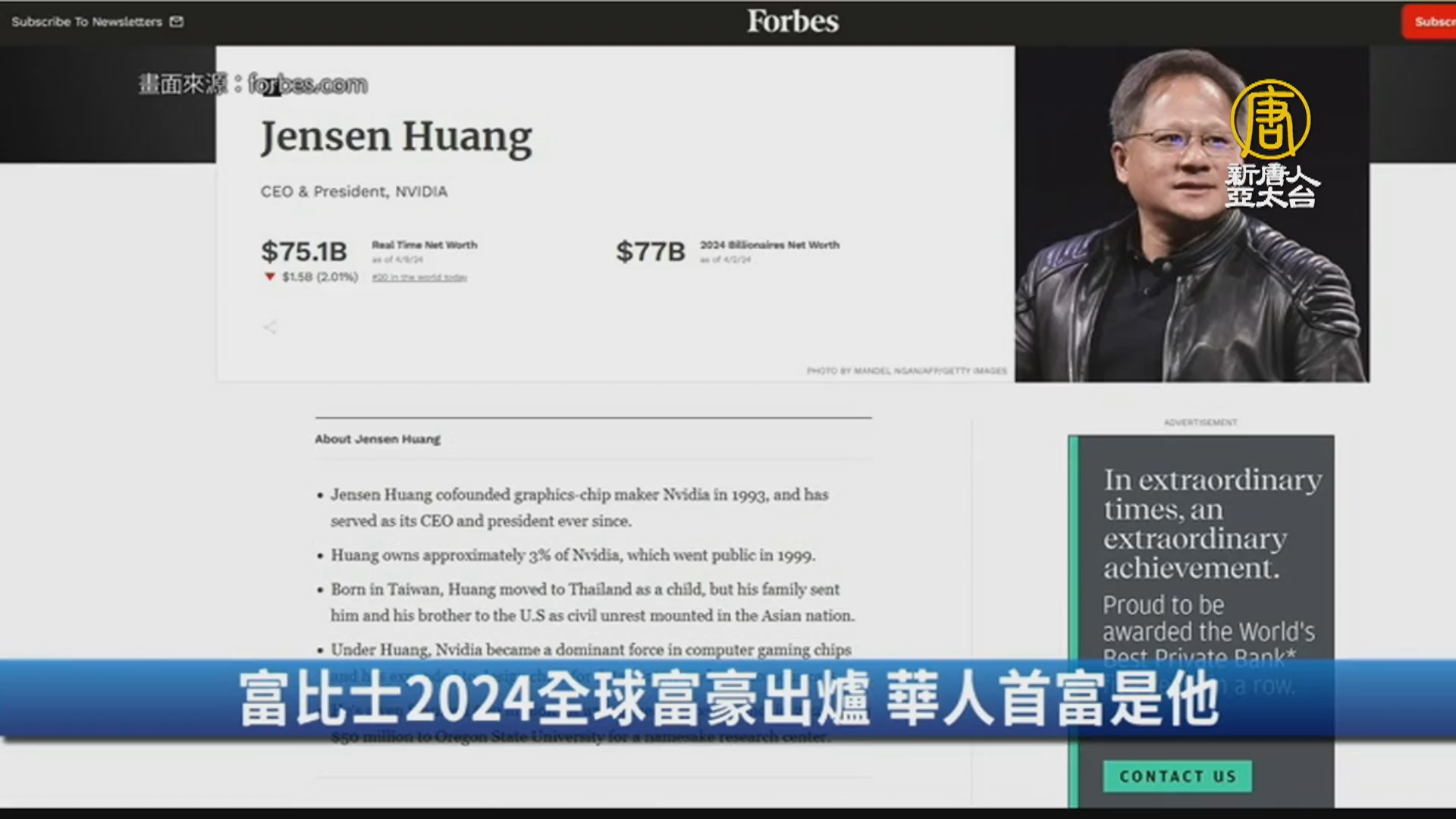 【新唐人亞太台 2024 年 04 月 10 日訊】富比士 2024 全球富豪出爐 華人首富是他
