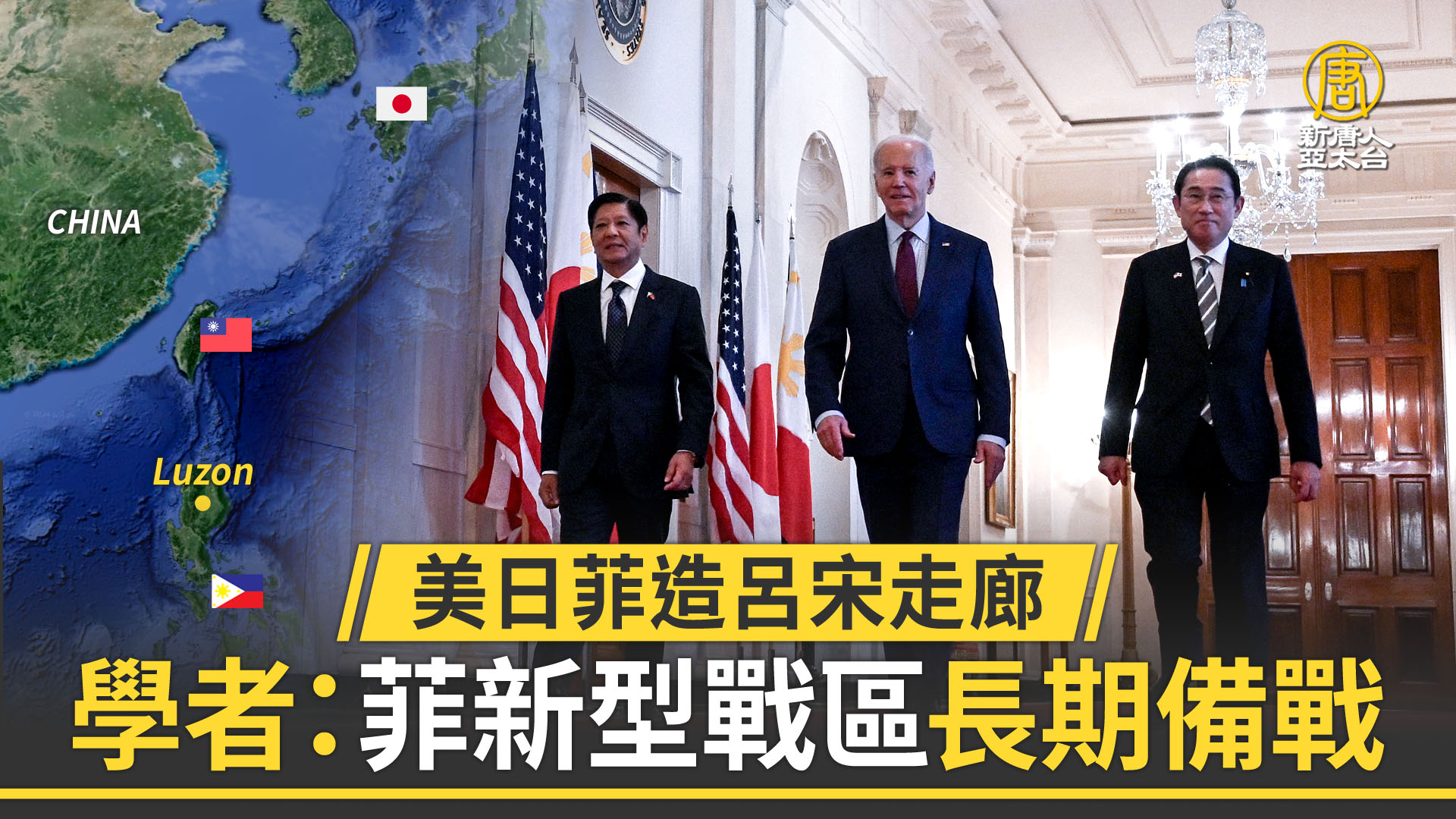 【新唐人亞太台 2024 年 04 月 12 日訊】美日菲峰會,宣布將打造呂宋經濟走廊,支持菲律賓升級蘇比克灣的民用港口,這曾是美軍在海外最大基地,走廊還連通克拉克,這曾有美軍亞洲最大空軍基地,也連通馬尼拉等地。學者宋國誠(12日)解讀,這同時在建構新型的「菲律賓戰區」,防範中共擴張,讓人聯想二次大戰盟軍司令麥克阿瑟的布局。學者明居正解讀,可能在做長期備戰。