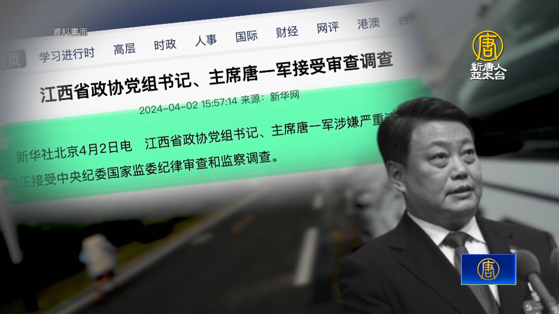 【新唐人亞太台 2024 年 04 月 12 日訊】中共前司法部長唐一軍日前被通報落馬。陸媒財新網曝光,唐一軍案涉恆大。不過該報導隨後遭刪除。有分析認為,恆大案還在延燒中共高層,有關報導敏感,因此被刪。