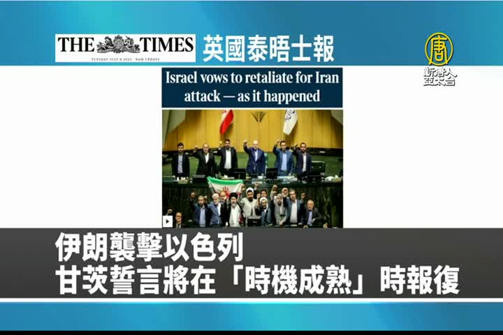 【新唐人亞太台 2024 年 04 月 15 日訊】接著是英國泰晤士報的報導:伊朗襲擊以色列,以色列戰時內閣成員甘茨誓言將在「時機成熟」時進行報復。