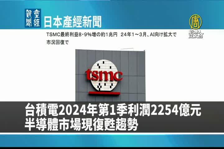 【新唐人亞太台 2024 年 04 月 19 日訊】來看到日本產經新聞報導:台積電2024年第1季利潤2254億元,半導體市場出現復甦趨勢。