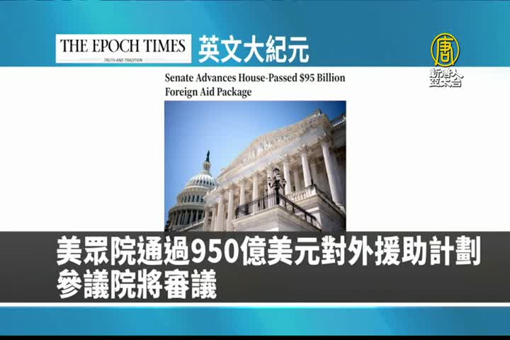 【新唐人亞太台 2024 年 04 月 24 日訊】首先來看到美國大紀元英文版報導:美眾院通過950億美元對外援助計劃,參議院將審議。