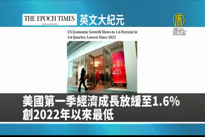 【新唐人亞太台 2024 年 04 月 26 日訊】首先來看到美國大紀元英文版報導:美國第一季經濟成長率放緩至1.6%,創2022年以來最低。