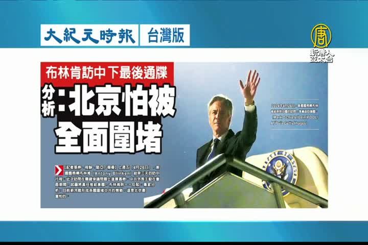 【新唐人亞太台 2024 年 04 月 29 日訊】接著看到大紀元時報台灣版報導:布林肯訪中下最後通牒,分析指出,北京怕被全面圍堵。