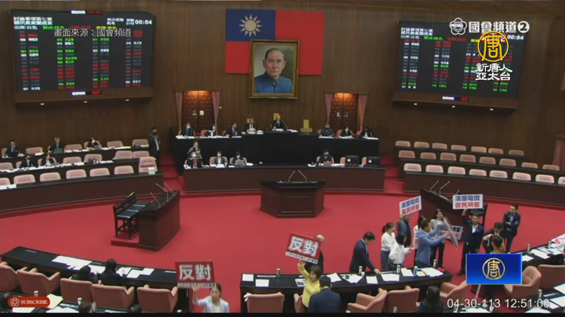 【新唐人亞太台 2024 年 04 月 30 日訊】立法院針對電價凍漲案,進行表決大戰,藍白兩黨挾人數優勢,最終以59:50通過凍漲電價,表決後,立法院做出凍漲電價的決議。對此經濟部表示,目前電價審議機制,是依照2015年立法院決議訂定電價公式,依照電業法辦理。經濟部尊重國會的決議跟關切,但無論是經濟部或台電,都必須依法守法執行業務,也就是4月電價依決議,仍須照常調漲。