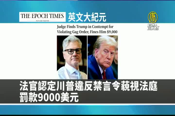 【新唐人亞太台 2024 年 05 月 01 日訊】首先來看到美國大紀元英文版報導:法官認定川普違反禁言令藐視法庭,罰款9000美元。