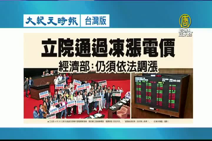 【新唐人亞太台 2024 年 05 月 01 日訊】接著看到大紀元時報台灣版報導:立院通過凍漲電價,經濟部:仍須依法調漲。