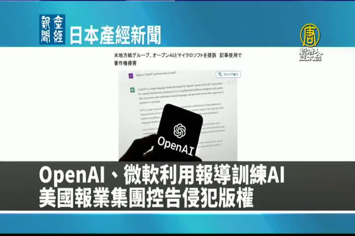 【新唐人亞太台 2024 年 05 月 02 日訊】來看到日本產經新聞報導:OpenAI 、微軟利用新聞報導訓練對話型人工智慧,美國報業集團控告侵犯版權、尋求賠償。