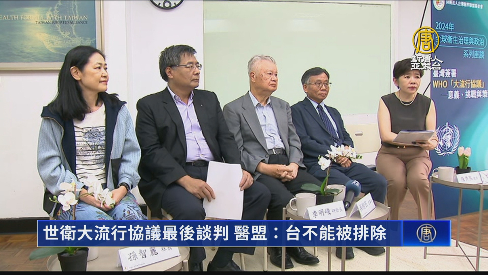 【新唐人亞太台 2024 年 05 月 02 日訊】好,五月底將召開的世界衛生大會(WHA),可能將通過大流行協議,目前各國代表正在談判的最後階段,台灣將爭取成為觀察員,這攸關台灣在下一次的疫情大流行中,能否即時取得關鍵技術,來保護兩千三百萬人民的健康。