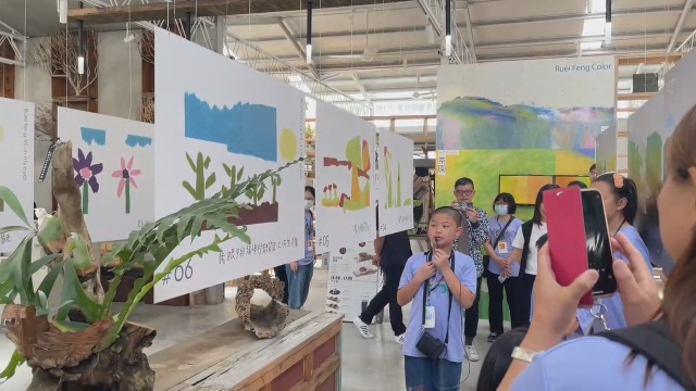 【新唐人亞太台 2024 年 05 月 02 日訊】國立台中教育大學文化創意產業設計與營運學系學生王孟暄、吳采晏及陳亮予組成「十九號留聲機」計畫團隊,與位在大阿里山茶區的嘉義縣梅山鄉瑞峰國小合作,開設工作坊,引導19位小學生化身為小小設計師,用藝術詮釋家鄉,地方創生成果以專業佈展在梅山空氣圖書館展出至5月7日。
