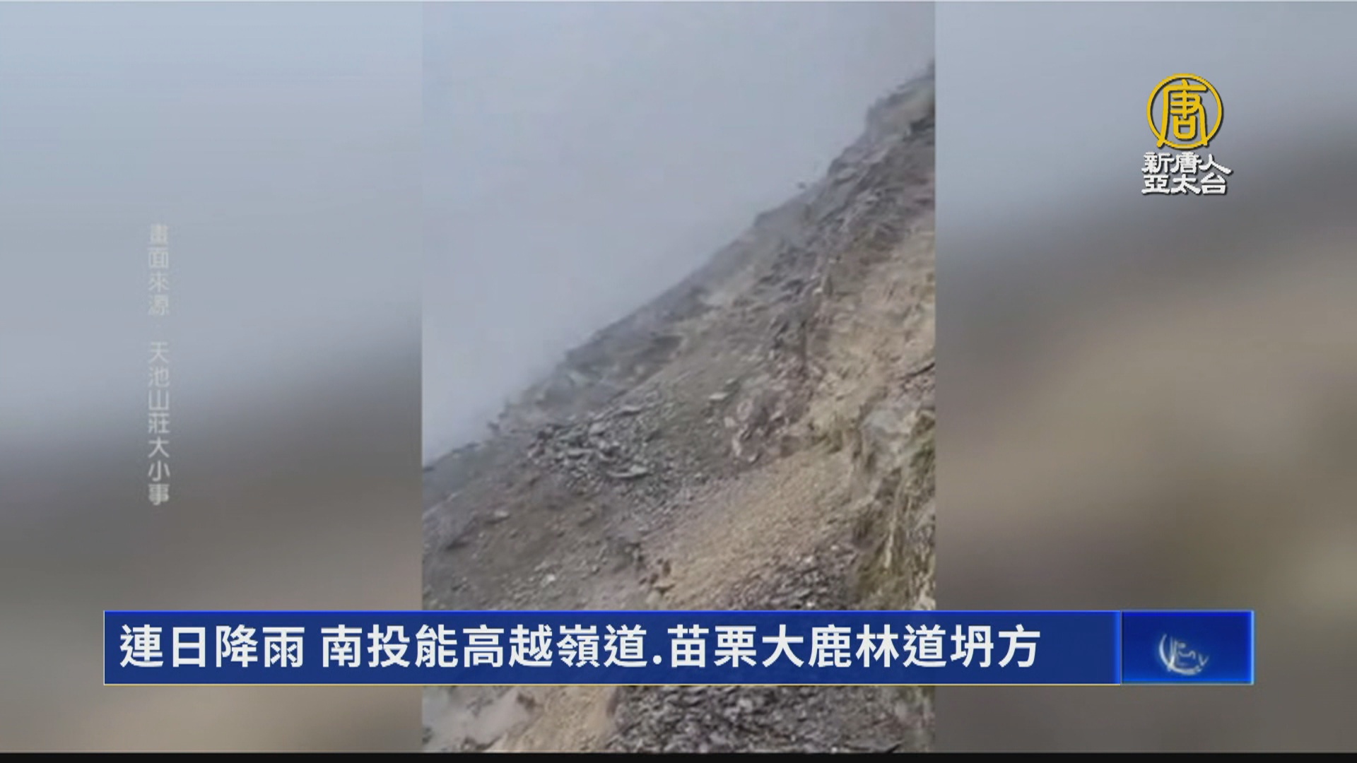 【新唐人亞太台 2024 年 05 月 02 日訊】歡迎回來,0403地震後,餘震不斷,加上連日來的降雨,導致山區土石鬆軟,南投能高越嶺步道也出現嚴重崩塌。林保署特別放寬天池山莊的退費標準,希望民眾避免上山。另外,苗栗大鹿林道東線,也有好幾處落石點,有的路道清理完後又再度坍方,因而暫時封閉。