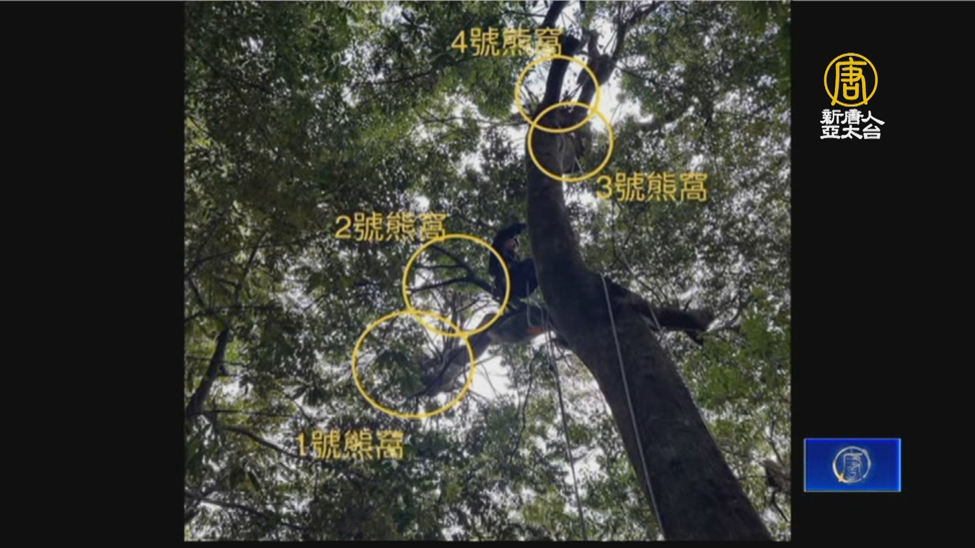 【新唐人亞太台 2024 年 05 月 08 日訊】歡迎回來。林業保育署台中分署,近期在大雪山地區,進行紅外線監測相機的維護工作,發現有一棵「青剛櫟樹」,出現熊爪痕跡,森林護管員攀爬上樹,發現樹上共有4個大小不一的熊窩,周邊也有用剩的枝條,難得一見的熊窩曝光,也讓監測員又驚又喜。