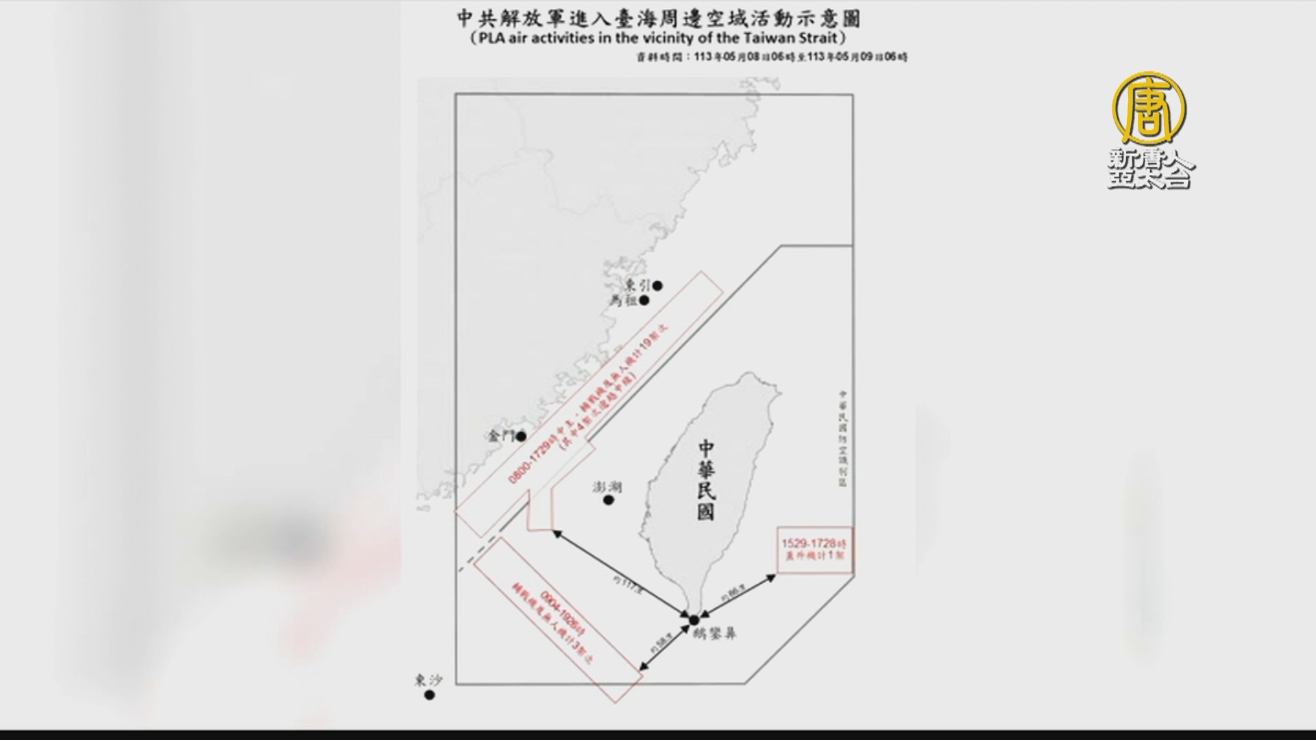 【新唐人亞太台 2024 年 05 月 09 日訊】在昨天(8日)一艘美國軍艦穿越台海的同時,中共派軍機、軍艦在台海周邊活動。中華民國國防部偵獲23架次共機與5艘次共艦。其中四架共機逾越海峽中線,另外西南空域、東部空域有五架共機活動。國軍運用任務機、艦及岸置飛彈系統嚴密監控與應處。